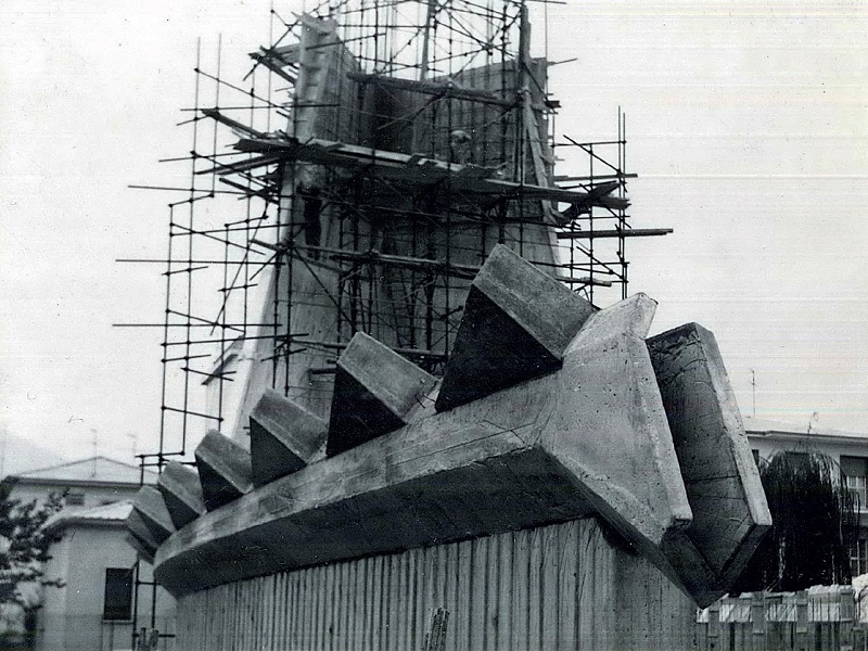 La chiesa fu realizzata su progetto dell’ingegnere Gasparini, e consacrata nel 1966. Si tratta di un’architettura interessante per l’uso dei materiali, in particolare per l’uso plastico del calcestruzzo, sia nella struttura del tetto e dei doccioni (che rimandano alla poetica del béton brut ancora in voga in quegli anni), sia per il grande pannello scultoreo di facciata, interamente realizzato con cemento bianco e raffigurante la Vergine col Bambino, in chiave moderna.